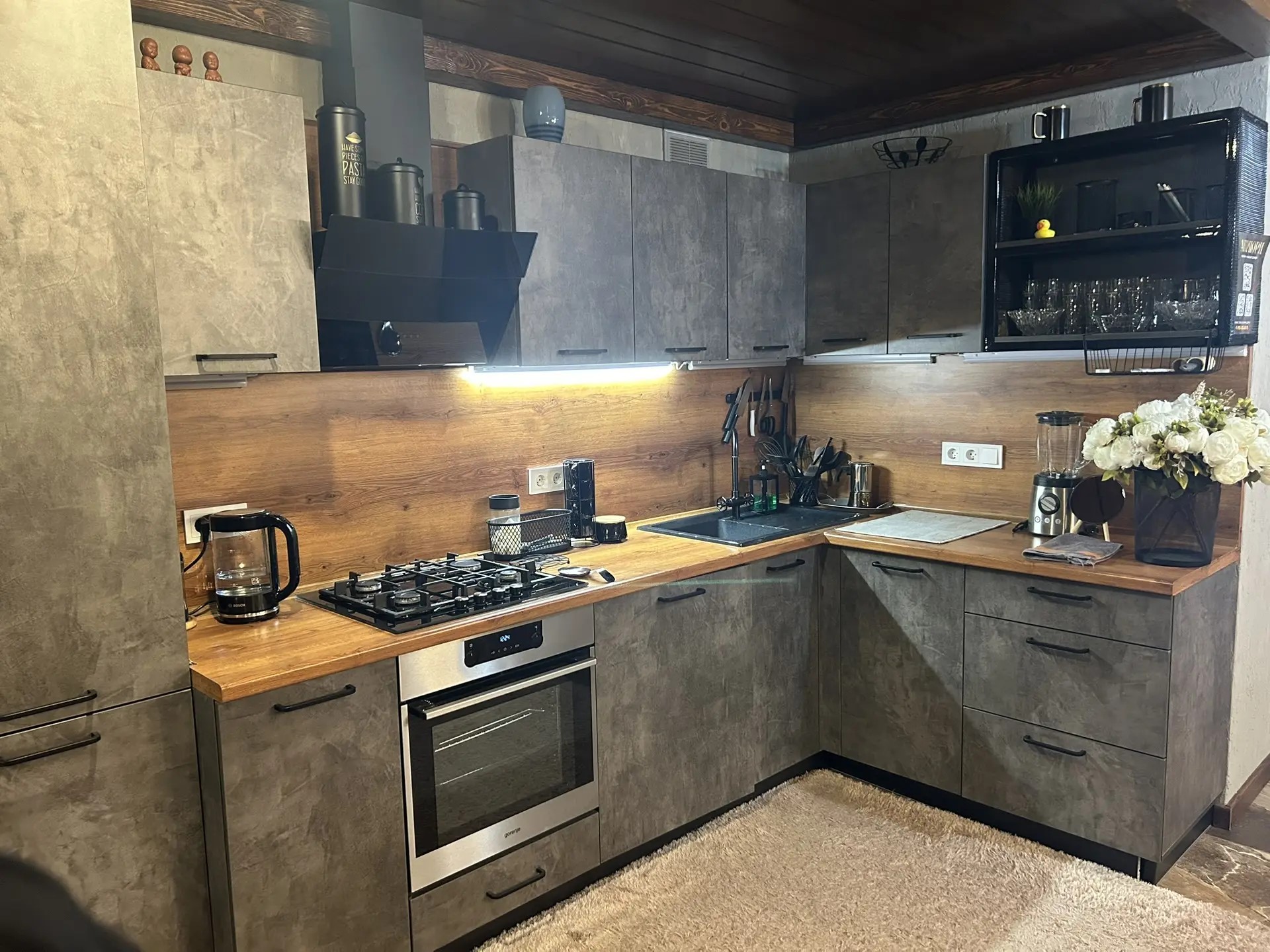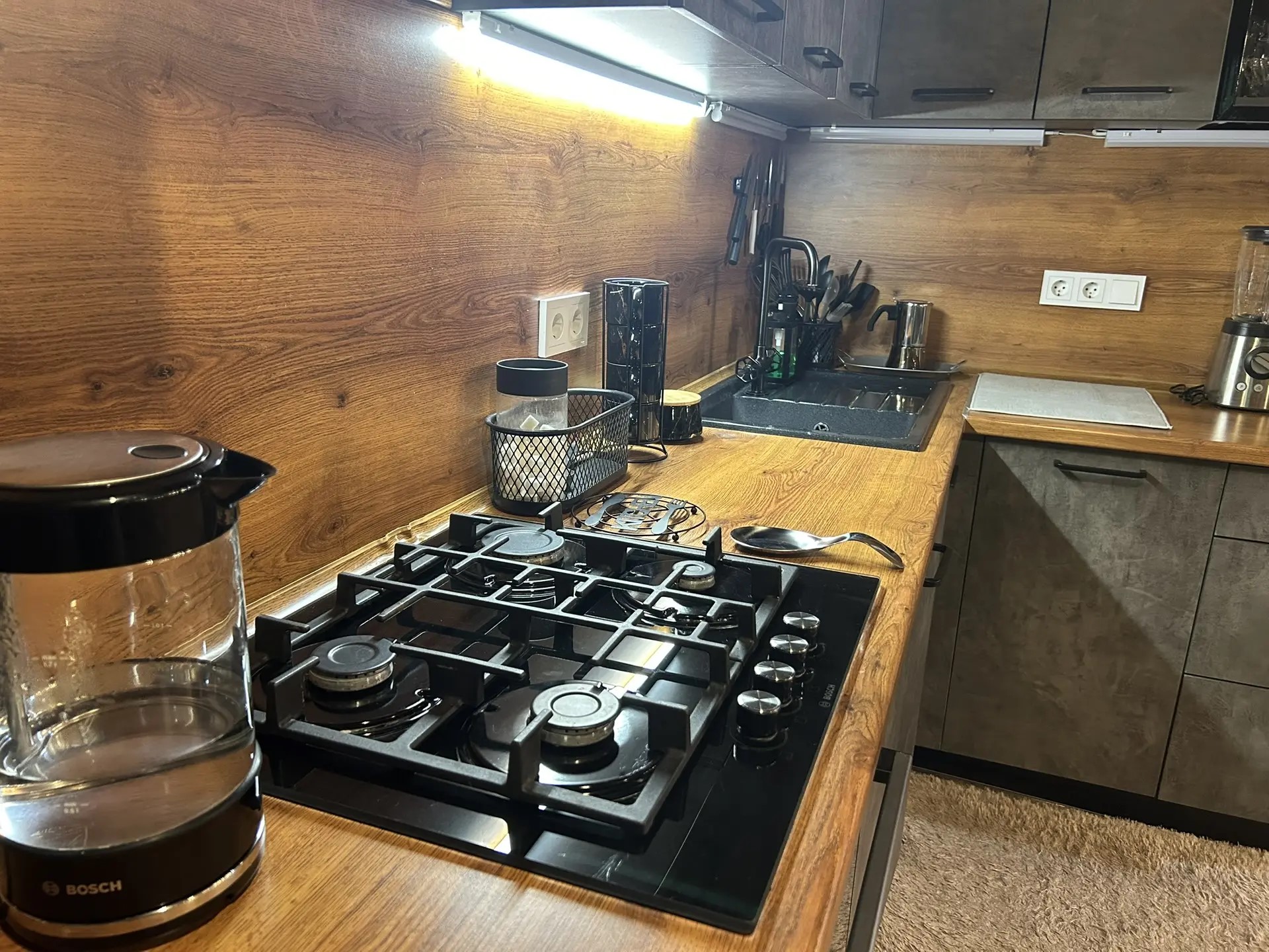 - Кухня премиум-класса. Оснащена по последнему слову техники: от современной бытовой техники до стильной посуды. Идеально для тех, кто ценит комфортную аренду в центре с возможностью готовить кулинарные шедевры.