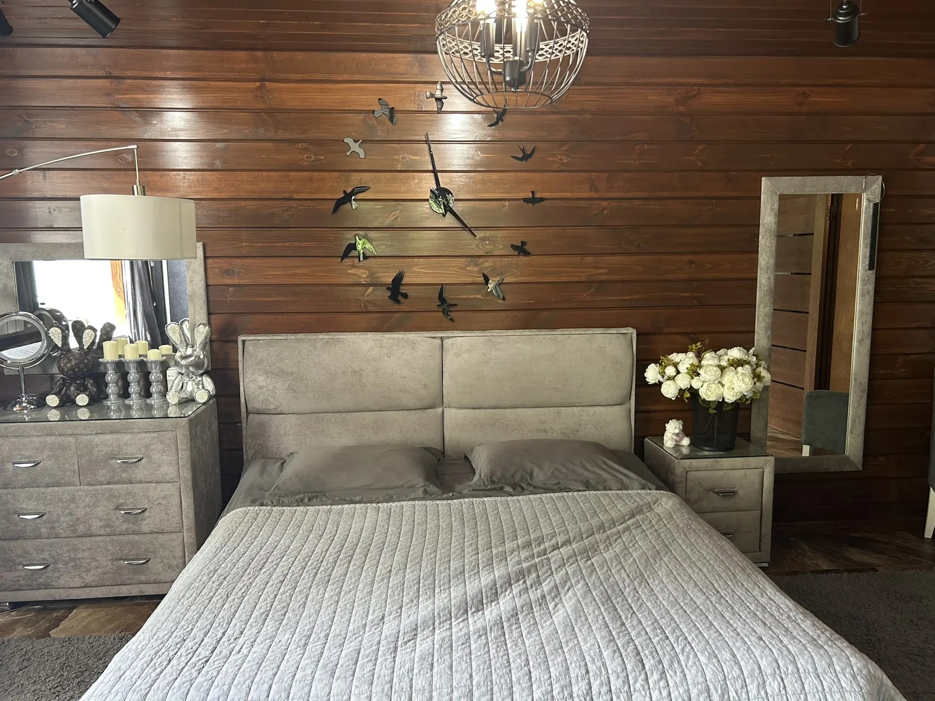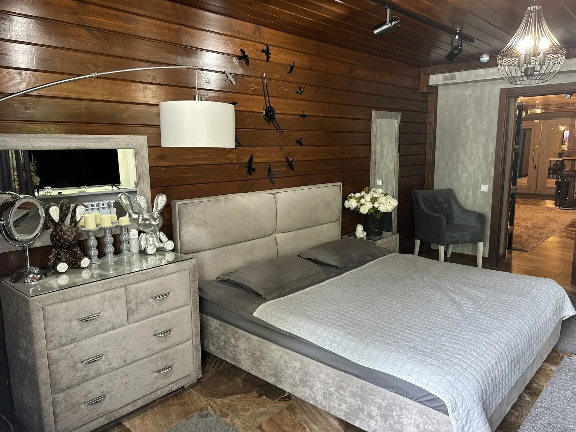 - Уютная спальня. Оформленная в приглушенных тонах, с удобной кроватью на ортопедическом матрасе, мягким постельным бельем и плотными шторами. Всё для крепкого и здорового сна.